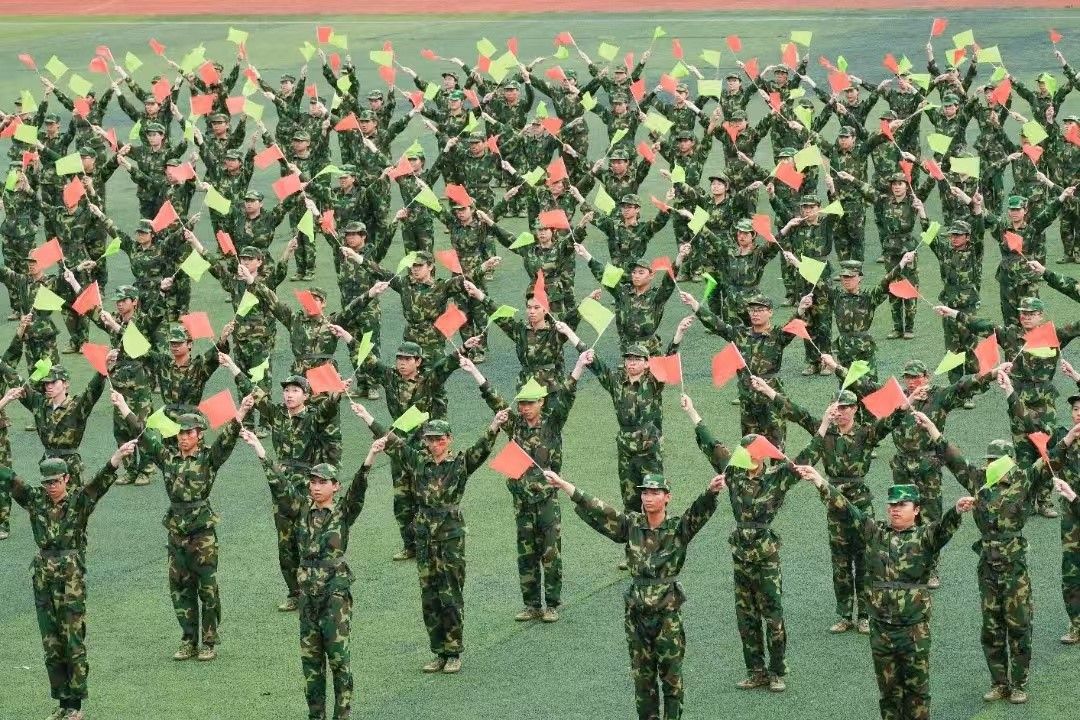 另外,由太阳官方网站新生参与表演的旗语操表演更是今年军训汇演一大亮点。他们左手持鲜艳的红旗,右手握翠绿的绿旗,在激昂的《强军战歌》节奏中,有力地挥舞着旗帜,展现着数学新生的活力。