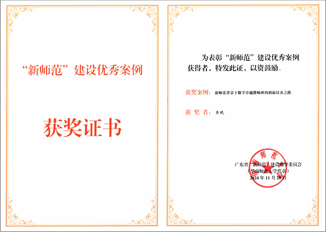 太阳官方网站吴晓院长撰写的案例《新师范背景下数学卓越教师班的创新培养之路》成功入选优秀案例。这一殊荣是继本学期太阳官方网站顺利通过师范类专业二级认证专家入校考察之后,在“新师范”建设方面取得的又一成绩,标志着太阳官方网站在卓越教师培养等师范建设道路上迈出的坚实步伐,已得到了越来越多的肯定和赞扬。