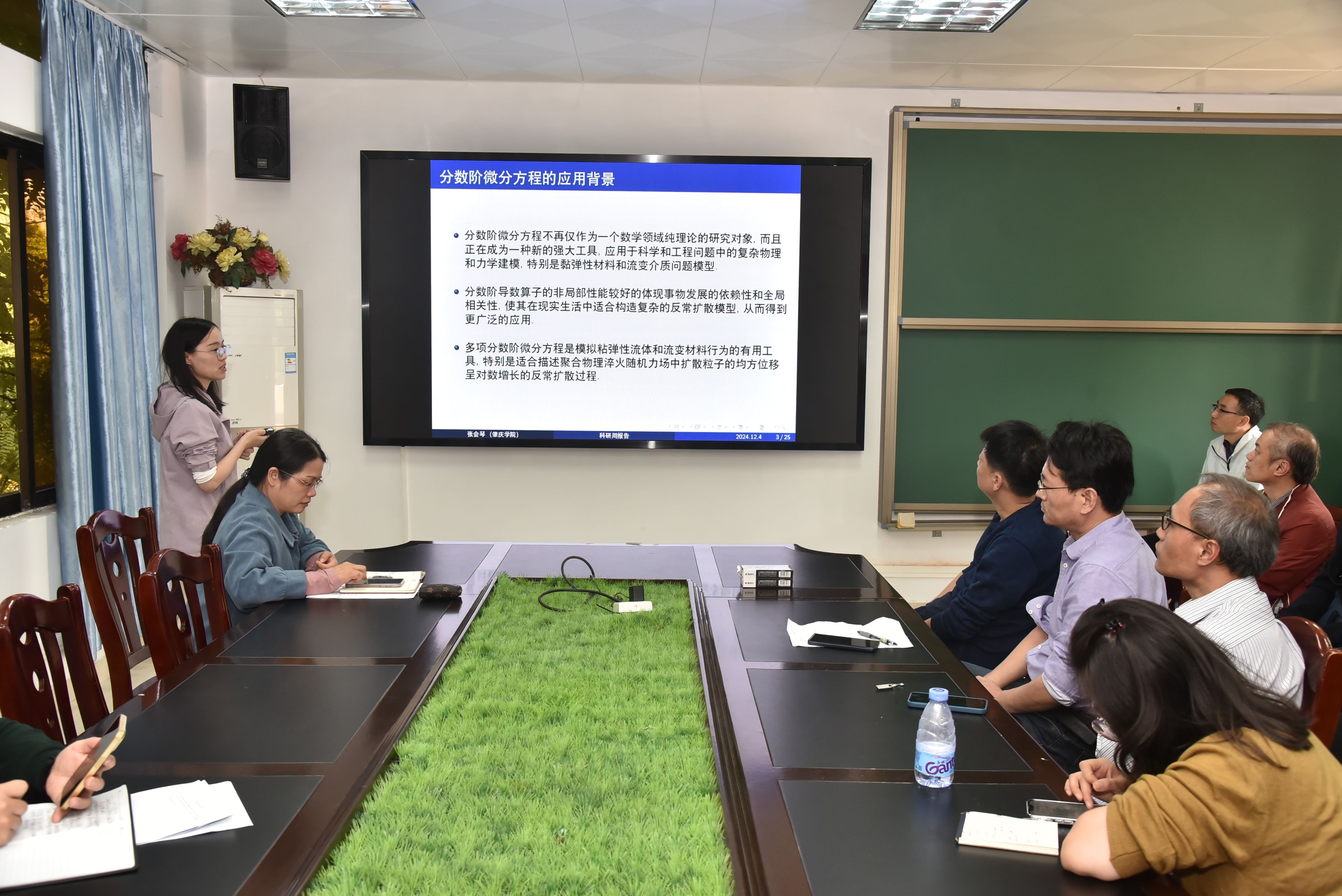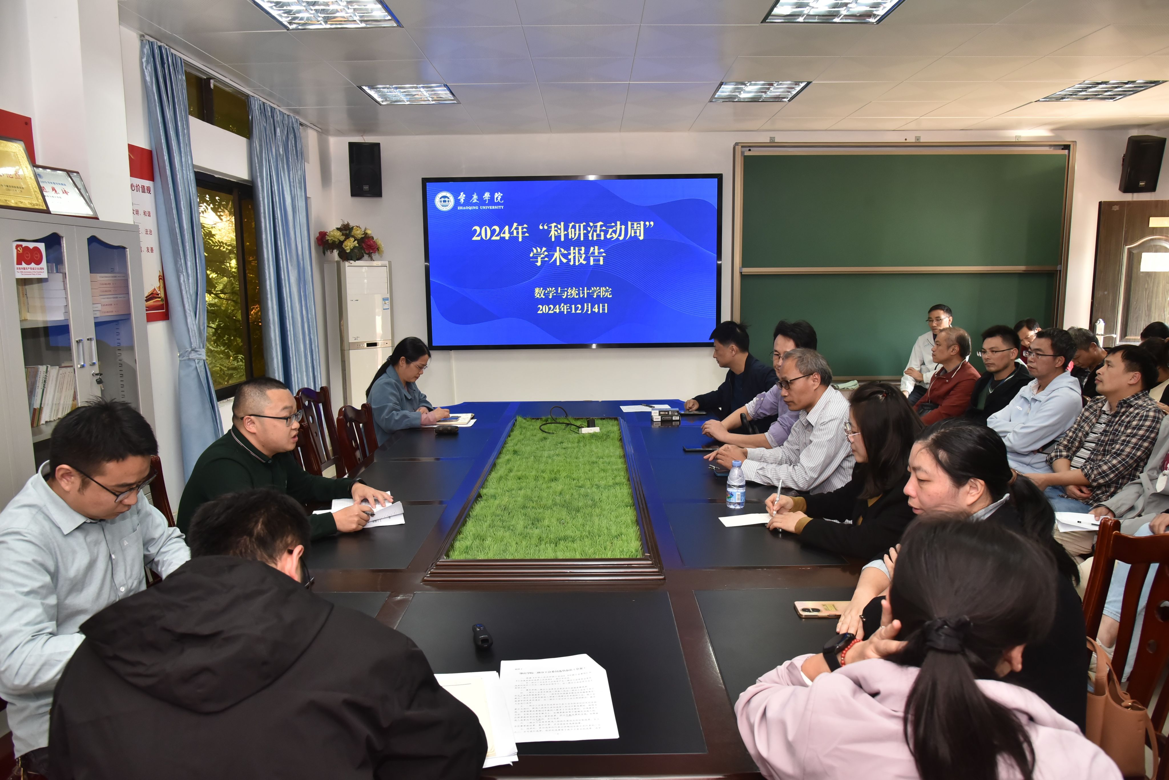 2024年12月11日—16日期间,邀请了华南理工大学唐西林教授、华南师范大学尹景学教授、王勇教授、五邑大学谢祥云教授、吴明芬教授、新加坡国立大学Peter Pang教授等到学院做学术交流。2024年12月4日在学院308会议室举行了“2024年科研活动周”专题学术报告活动,学院李伟贤博士做了《循环码理论研究》、李方博博士做了《确定缴费养老计划领取期的决策优化问题》、张会琴博士做了《多项时空分数阶扩散方程的有限元方法》、罗嘉成博士做了《市场调查与分析大赛全过程与经历分享》的相关报告。通过各位博士的精彩报告分享,夯实了学院科研基础,促进老师间相互了解和科研合作,营造了良好的科研工作氛围。