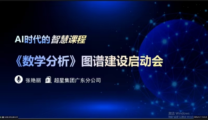 1月17日,太阳官方网站数学分析课程组在线召开“数学分析”图谱课程建设启动会。会议邀请了超星集团广东分公司张艳丽作主讲,课程组全体教师参加。