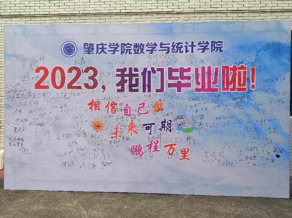 在毕业生晚会前夕,数学院特别制作了“相信自己 未来可期 鹏程万里”签名打卡背景墙,为毕业生的记忆增添一抹别样的色彩。