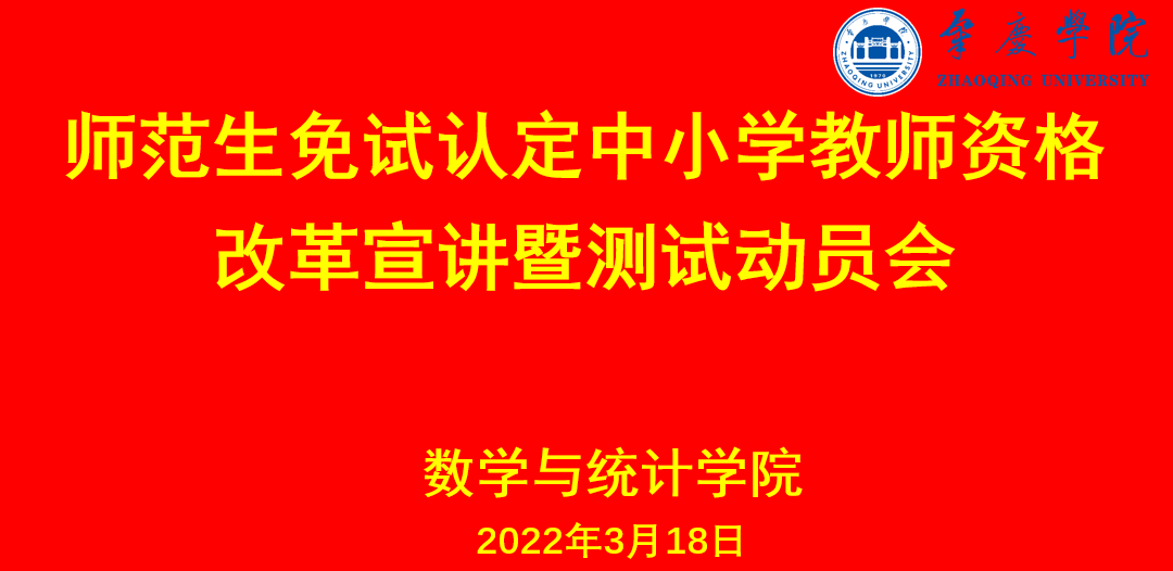 2022年3月18日,suncitygroup太阳官方网站通过线上形式,召开本院师范生免试认定中小学教师资格改革宣讲暨教师职业能力测试动员会议。出席会议的有吴晓副院长、教务员、数学与应用数学专业的各班班主任、辅导员,以及2018级与2019级共553名师范生。