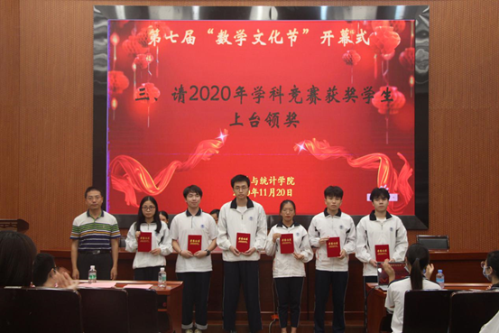 在朱院长的精彩讲话后,吴晓副院长宣读了2019年11月份以来在国家级、省级各类专业竞赛上获奖的学生名单,还对数学文化节成果及系列活动进行了介绍和阐述。