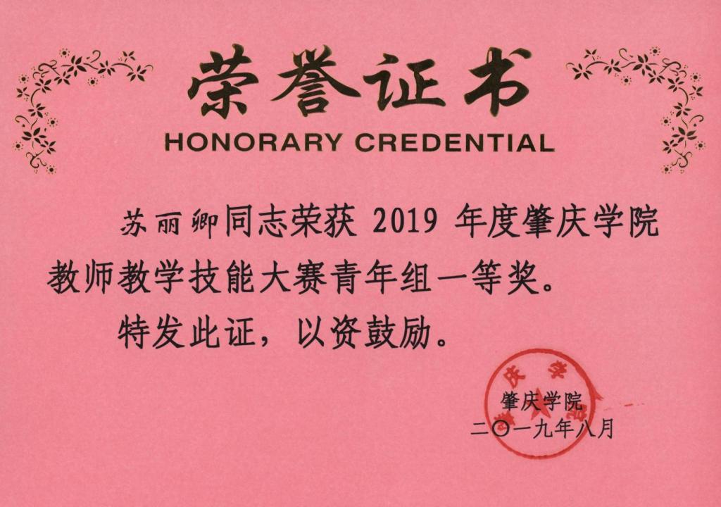 “学高为师”,学生能够在各类教学比赛中获得佳绩,作为指导老师自然也不能逊色。为了参加学校2019年度教师教学技能大赛,苏丽卿连续两周工作至深夜,反复多次修改教学设计和课件,力求理念新颖有特色,教学过程符合学生认知,丝丝入扣、引人入胜;教学语言的流畅规范,板书的美观大方……这些都是她对自己和她的学生的基本要求。功夫不负有心人,她获得了2019年教师教学技能大赛青年组一等奖,同年获得太阳官方网站2019年青年教学质量十佳教师称号。