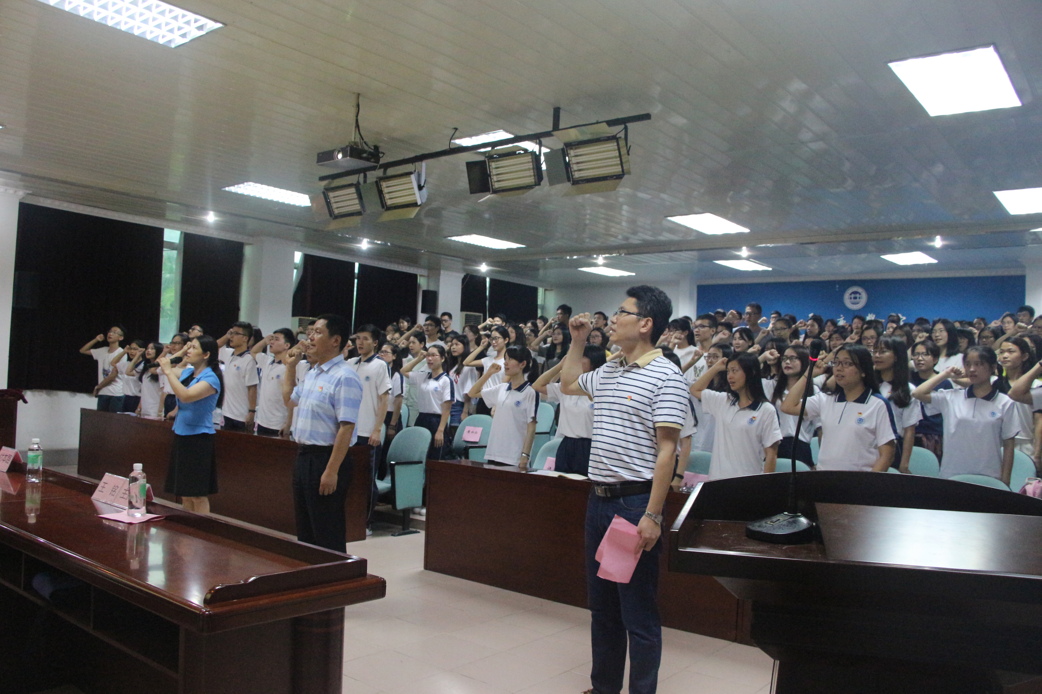 6月21日,数学院2017年新党员入党宣誓仪式暨“七一”党员表彰大会在第二会议室隆重召开。出席本次会议的有党委书记付本路同志、副书记高洁云同志、辅导员、全体学生党员、积极分子和先进个人代表,共200余人,党委委员王铭主持会议。