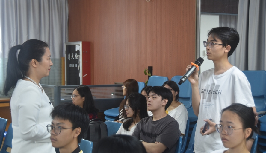 分享会中,余楚涛老师结合当前求职实际情况,通过现场互动、实操演练,详细地讲解了面试中的着装、仪态、言谈举止等方面的礼仪要求,并且就站姿、眼神交流、表情等仪态进行了现场示范。她强调,良好的面试礼仪不仅能给人留下深刻的第一印象,还能够展现出求职者的用心态度。同学们抓住互动的机会上台情景演绎、换装改造,在实操中掌握面试技巧。现场掌声连连,同学们收获满满。参与了换装改造的2023级数学与应用数学2班梁楚君表示,“细节决定成败。着装、站资、表情的作出一点点改变,整个人的气质、气场都不一样了。以后我也会继续实践,提高自己面试技能。”