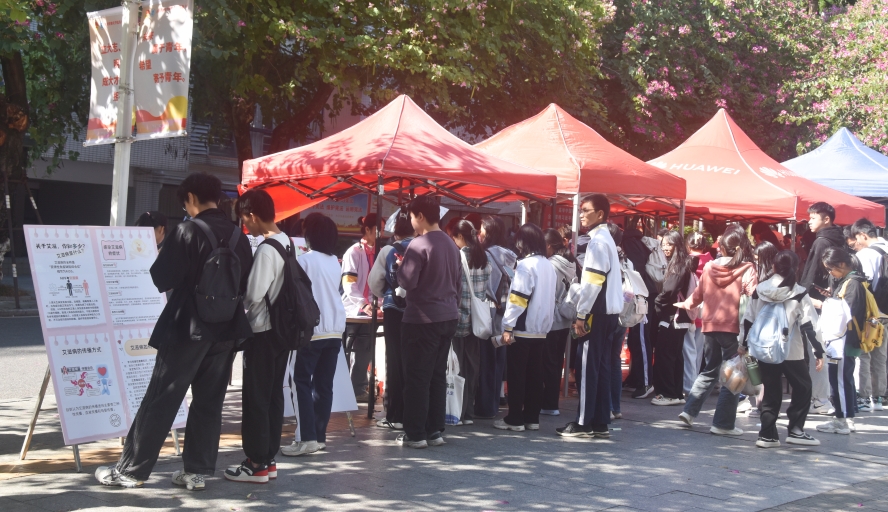 在校道上,学校设置了艾滋病预防的宣传摊位,摆放艾滋病防治知识宣传展板,开展学生喜闻乐见的现场互动小游戏,如防艾知识有奖问答、发布校园抗艾防艾宣言、绘制抗艾防艾的画作、制作艾滋病预防宣传折页等。