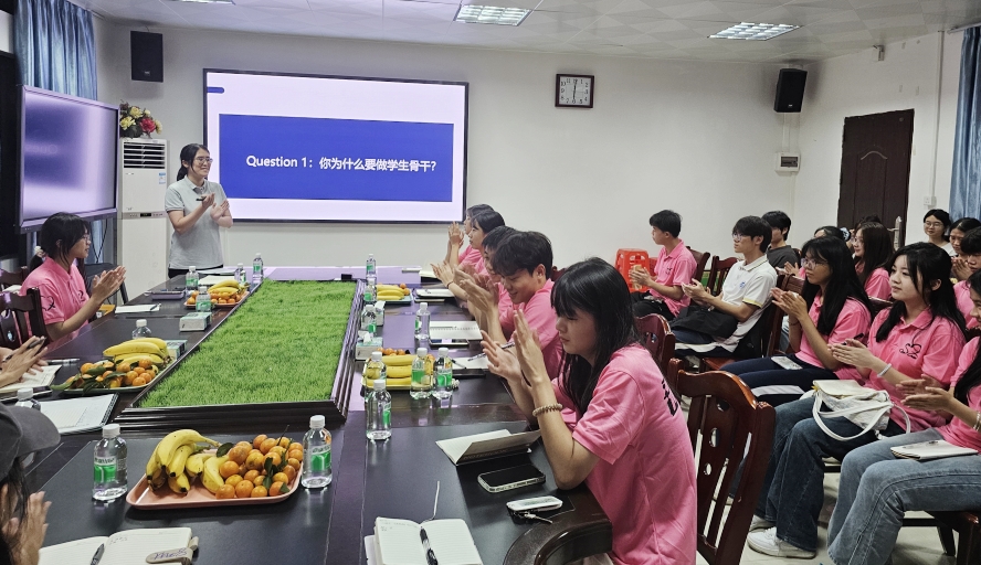 学院学生会秘书长潘敏仪在《向下扎根 向上成林——如何做好一名学生会骨干》专题分享中,向学生会工作人员强调,要在工作生活中应有的“清澈和纯粹”精神风貌,老老实实做人,踏踏实实干事。