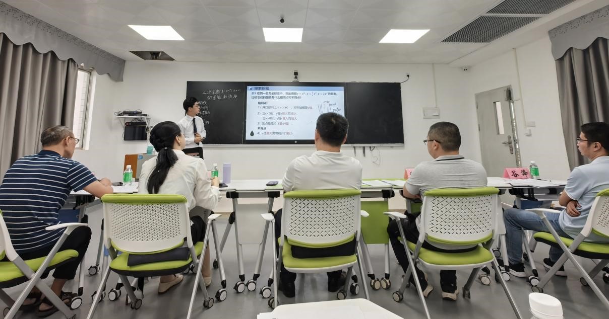 参加比赛的5名选手梁安琪、邓信、潘国炜、罗梦霞、邓芳香均来自学院2023级学科教学(数学)专业研究生。为了赛出最优成绩,研究生们赛前积极准备,进行多次演练,同学之间互相打磨课堂教学安排与设计。通过课堂教学竞赛实践、现场教学设计讲解与答辩,参赛同学充分展示了在研究生学习中取得的成绩。路其昌、程从华评委对竞赛进行了总结点评,充分肯定参赛选手的现场表现,同时提出了改进提升意见,希望选手们今后顺利晋级,最后能参加全国赛事并取得好成绩。