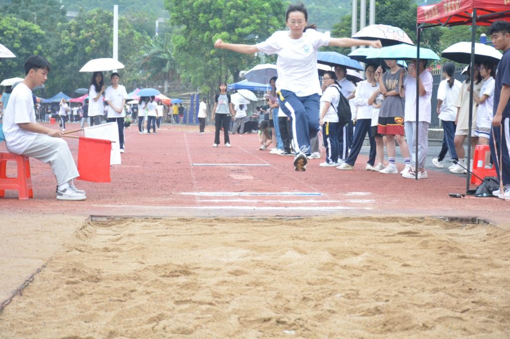 这一天雨连绵不断,但是同学们对运动会的热情并没有被这雨浇灭,运动健儿们怀揣着对运动的热爱和对胜利的渴望在运动场肆意地奔跑着、跳跃着。他们拼搏的样子成为了运动场上一道靓丽的风景线。未参加比赛的同学们也被他们拼搏的样子所感染,纷纷为他们加油呐喊,终点打着雨伞拿着水迎接他们的运动健儿,为他们送上一份温暖和关心。上午的男、女子100米、400米、1500米、铅球、跳高、跳远以及三级跳远的比赛顺利完成。