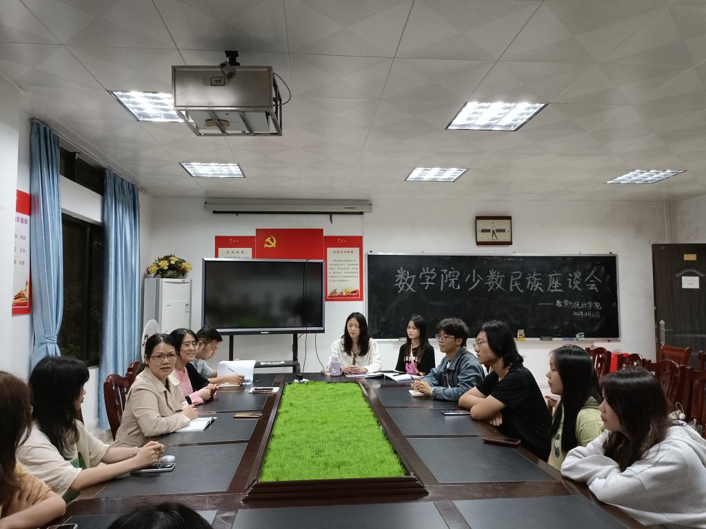 2023年4月6日下午17:50太阳官方网站在系办308举行数学院少数民族座谈会,出席本次座谈会的人员有学院党委副书记高洁云、学院团组织负责人潘敏仪、辅导员张驰和来自2020级、2021级、2022级15名少数民族的同学。