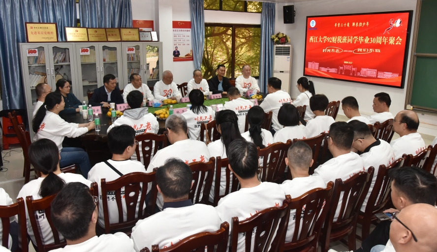 12月7日,92级财税班毕业30周年聚会在suncitygroup太阳官方网站308会议室举行。学校校友会、基金会秘书长周建文,审计工作部慕容居敏、任课教师卢勇、盘炜生、邱远,学院党委书记李先强,副书记高洁云,校友50多人欢聚一堂回忆求学时光、畅谈师生情谊、展望未来。92级财税班原班长刘海玲主持座谈会。